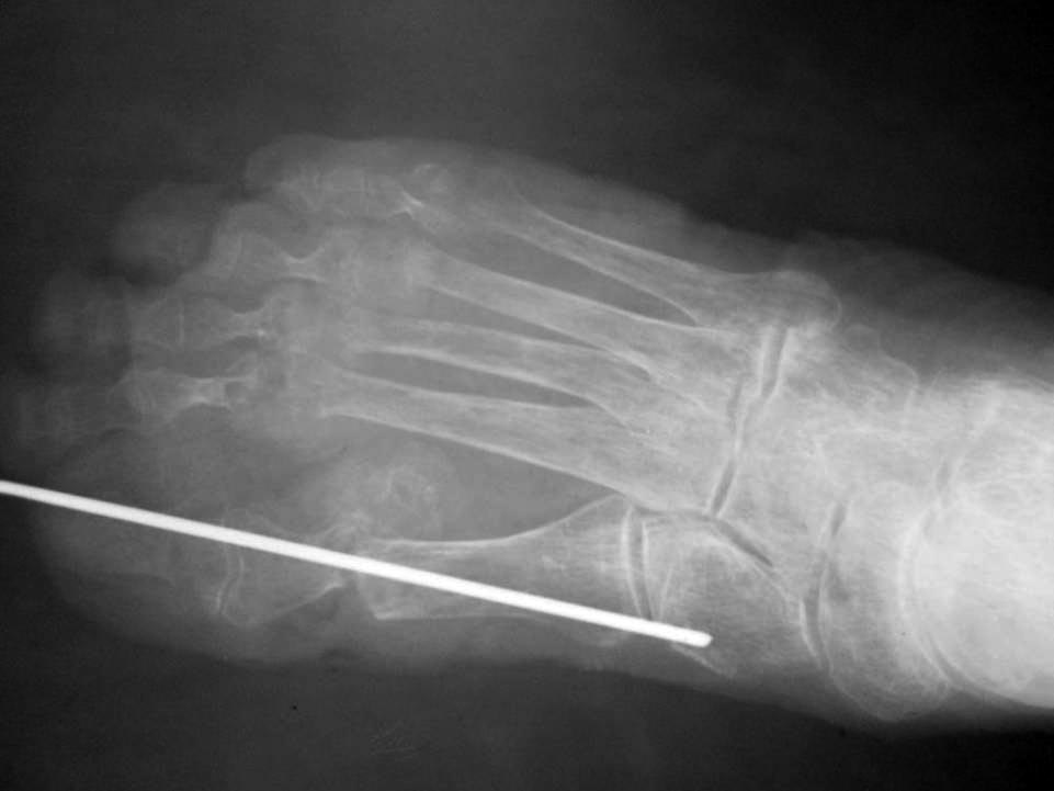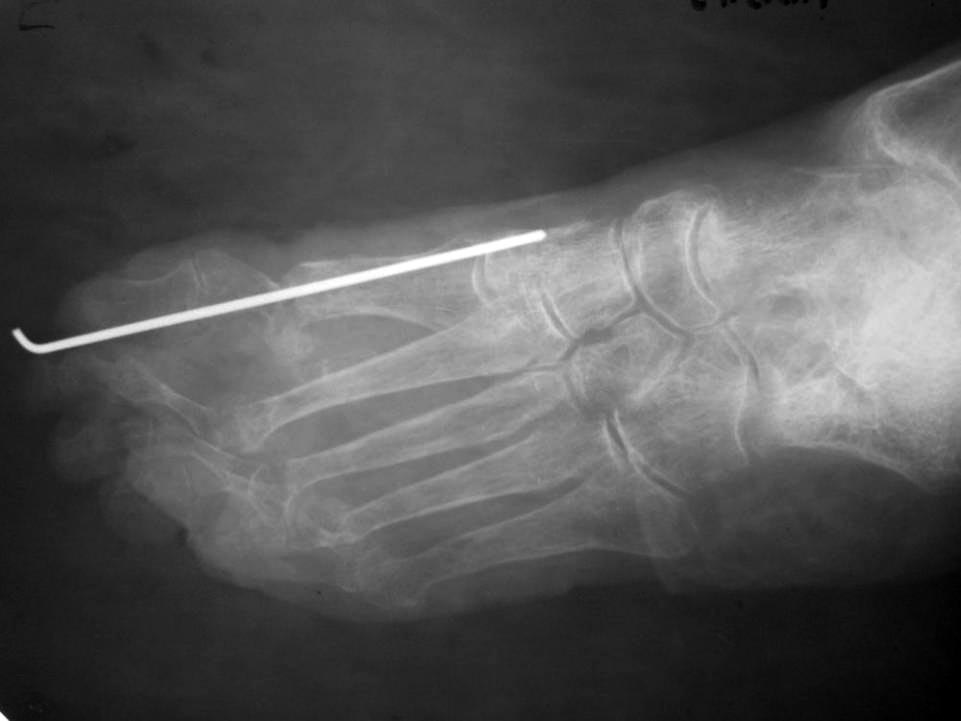 Пациентке выполнен артродез 1-ого плюснефалангового сустава, резекции