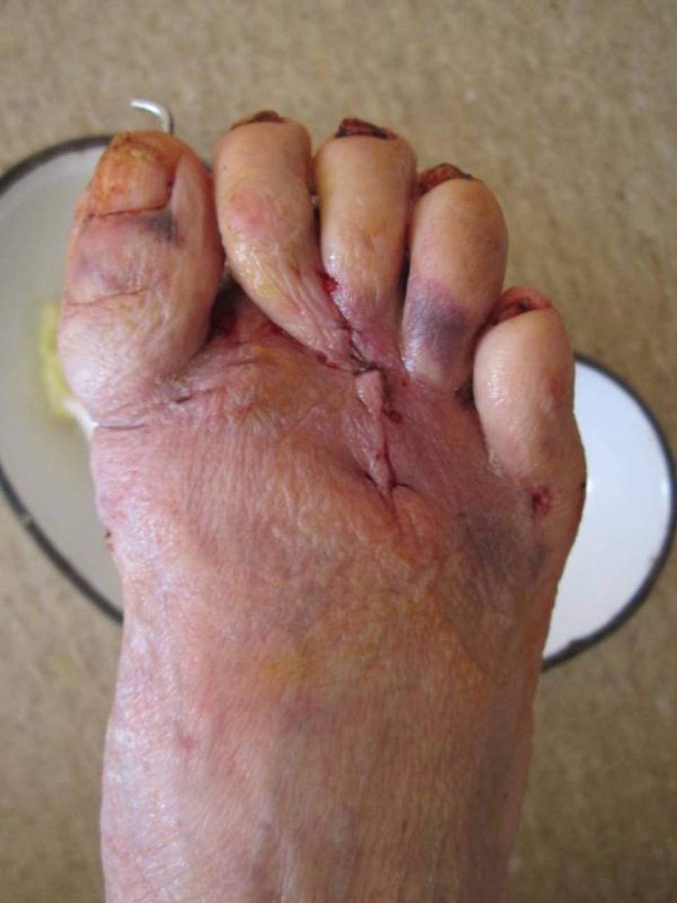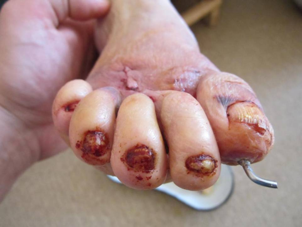 тенотомиии разгибаталей 2-5 п. стопы. Раны зажили первичным натяжением.