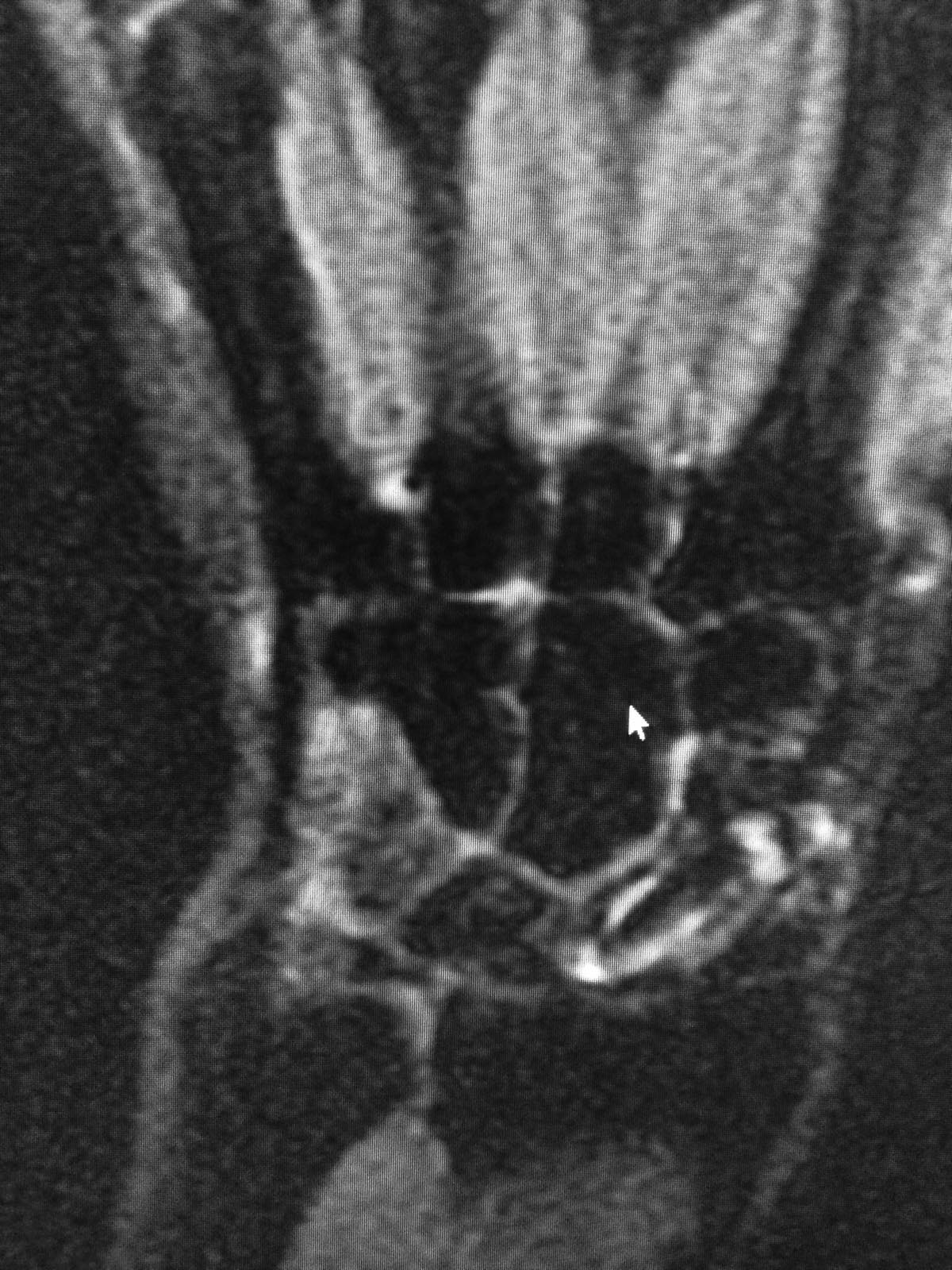 трехгранной кости). На МРТ отмечаются проблемы в этой зоне. Со слов