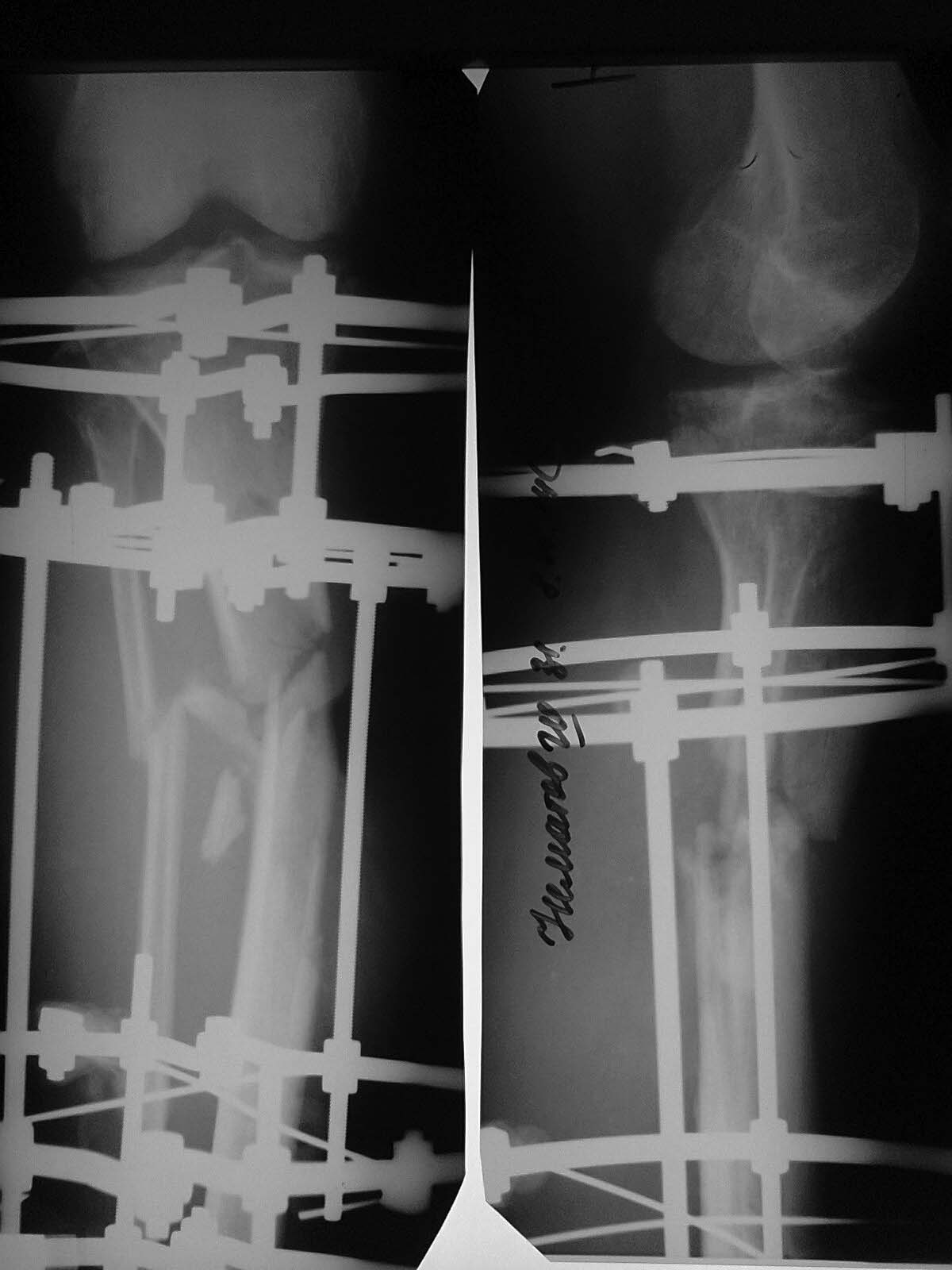 поверхности голени с обильным отделяемым. (Рентгенограммы- фото 1).