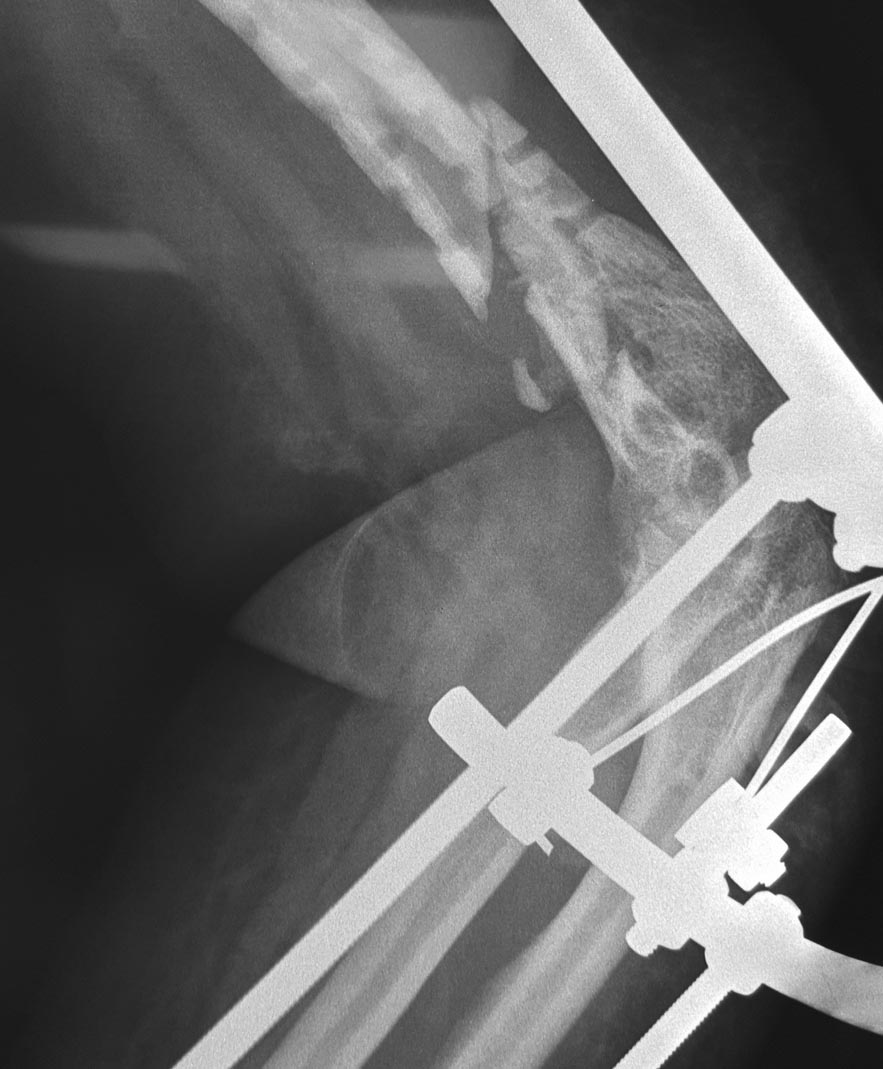 стабильностью через 1 месяц вырваны винты, угроза инфицирования