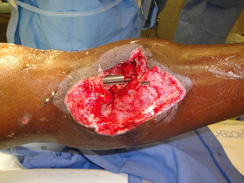 Такая этапная тактика: Irrigation and Debridement, наружный фиксатор,