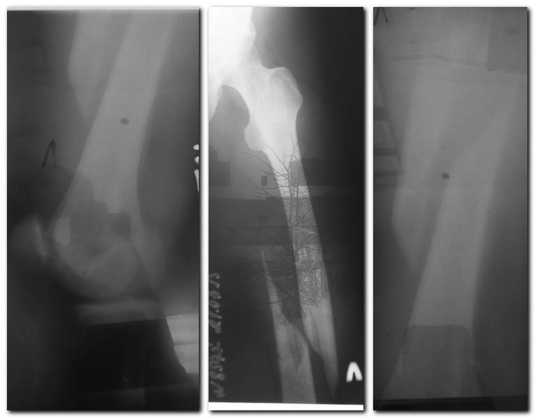 Перелом диафиза бедра косой, с раскалыванием по длине дистального