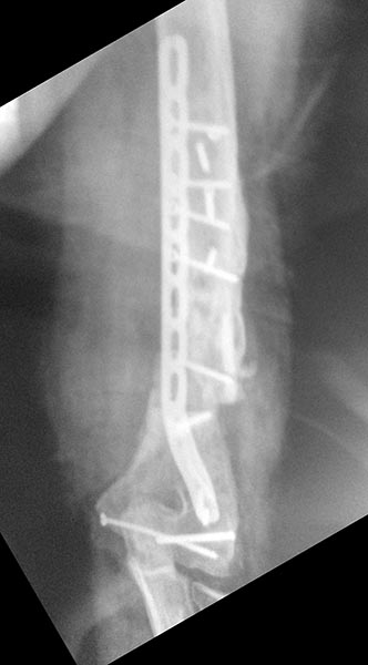 отдела правой плечевой кости. Остеосинтез пластинами в одной из