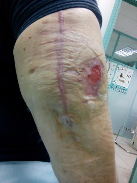 здоровой,все многократно промывал антисептиками, иссечены рубцы, края