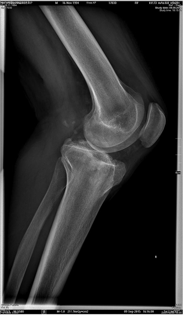 движений в коленном суставе полный. Нестабильность наружно-задняя.