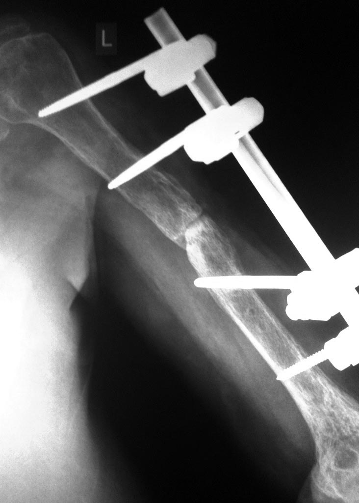 Обратилась пациентка с ложным суставом средней трети левого плеча