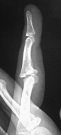 пальца кисти на 90 градусов. На рентгенограммах: фрагментарный перелом