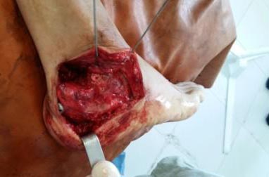 ахиллотомия. . подготовка ложа, и смещенный отломок спущен вниз к ложу,