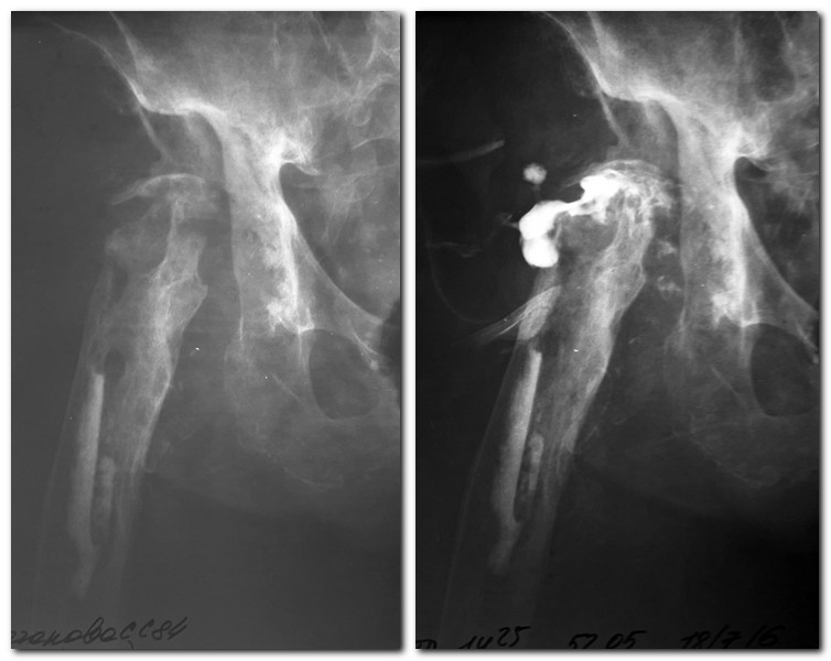 году,парапротезная инфекция.2 года свищей не было.Пациентка активна,