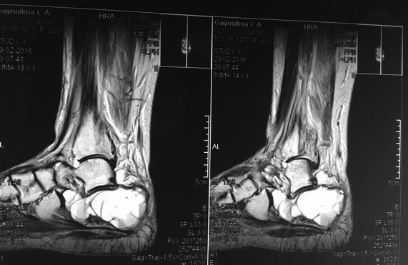 Пациентка Г., 38 лет. 1,5 года назад появились боли в левой пяточной