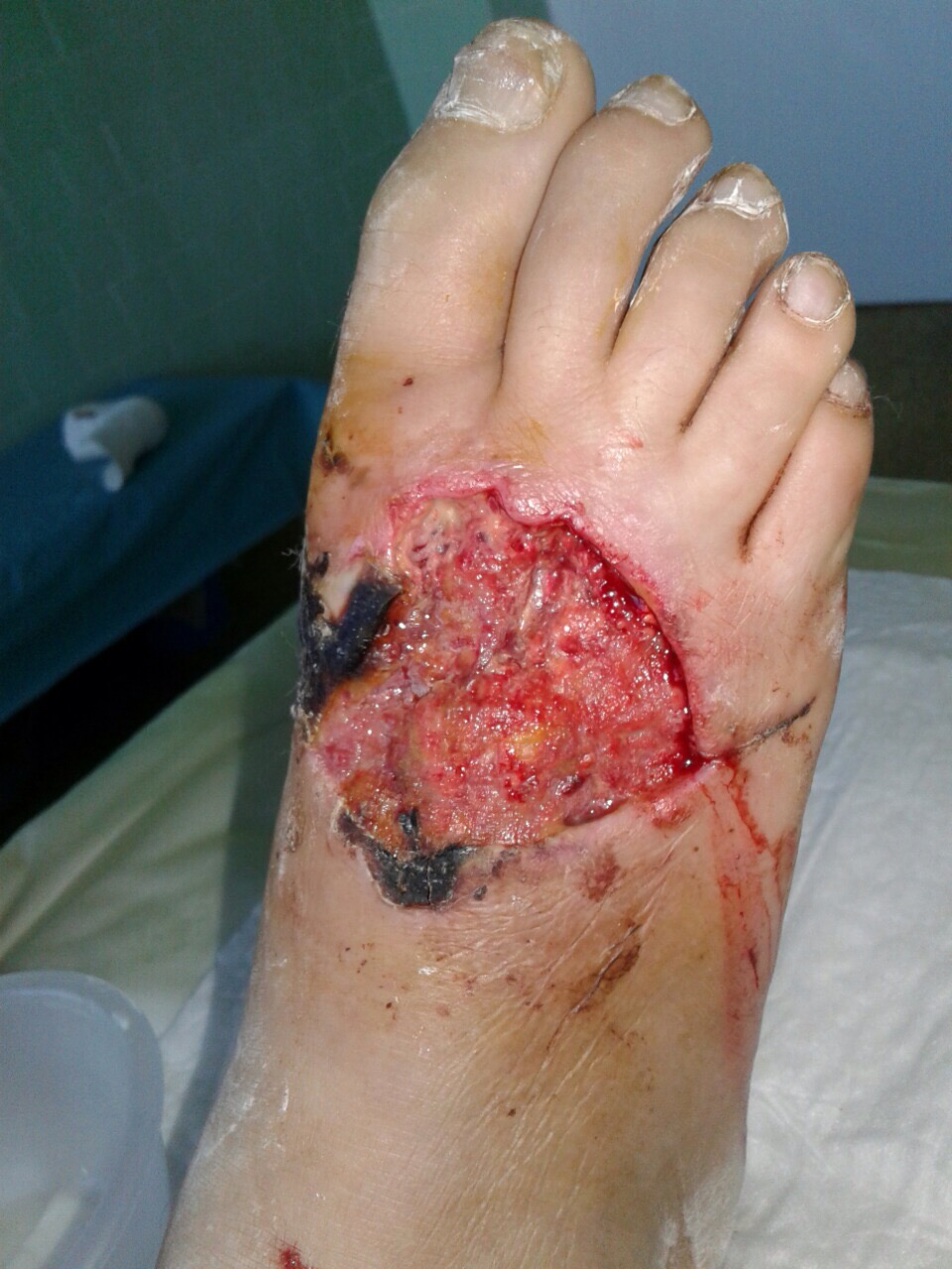Травма 3 недели назад: ДТП. Рванная рана правой стопы. Раневой процесс