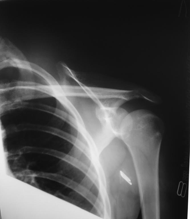 по лопатке. Тогда,со слов, в травматологическом отделении под общим