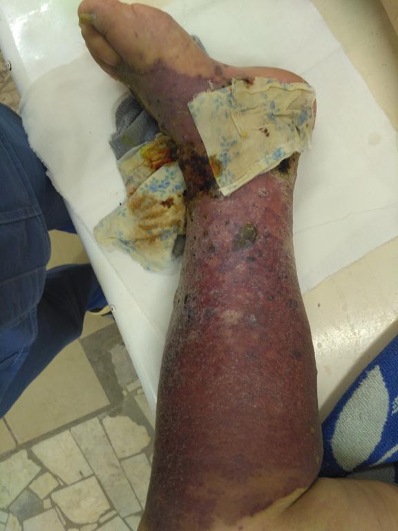 Сопутствующие лимфедема левой н.к конечности.трофические язвы на