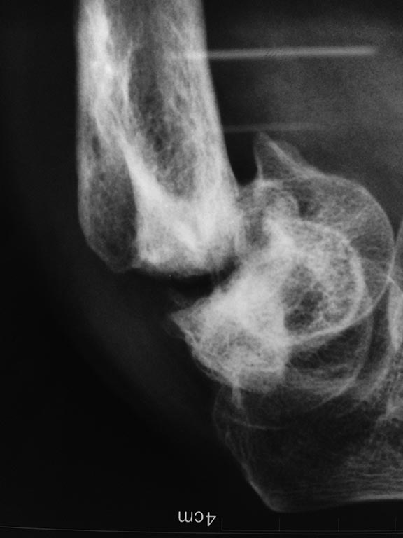 Многооскольчатый перелом дистального конца правой плечевой кости.