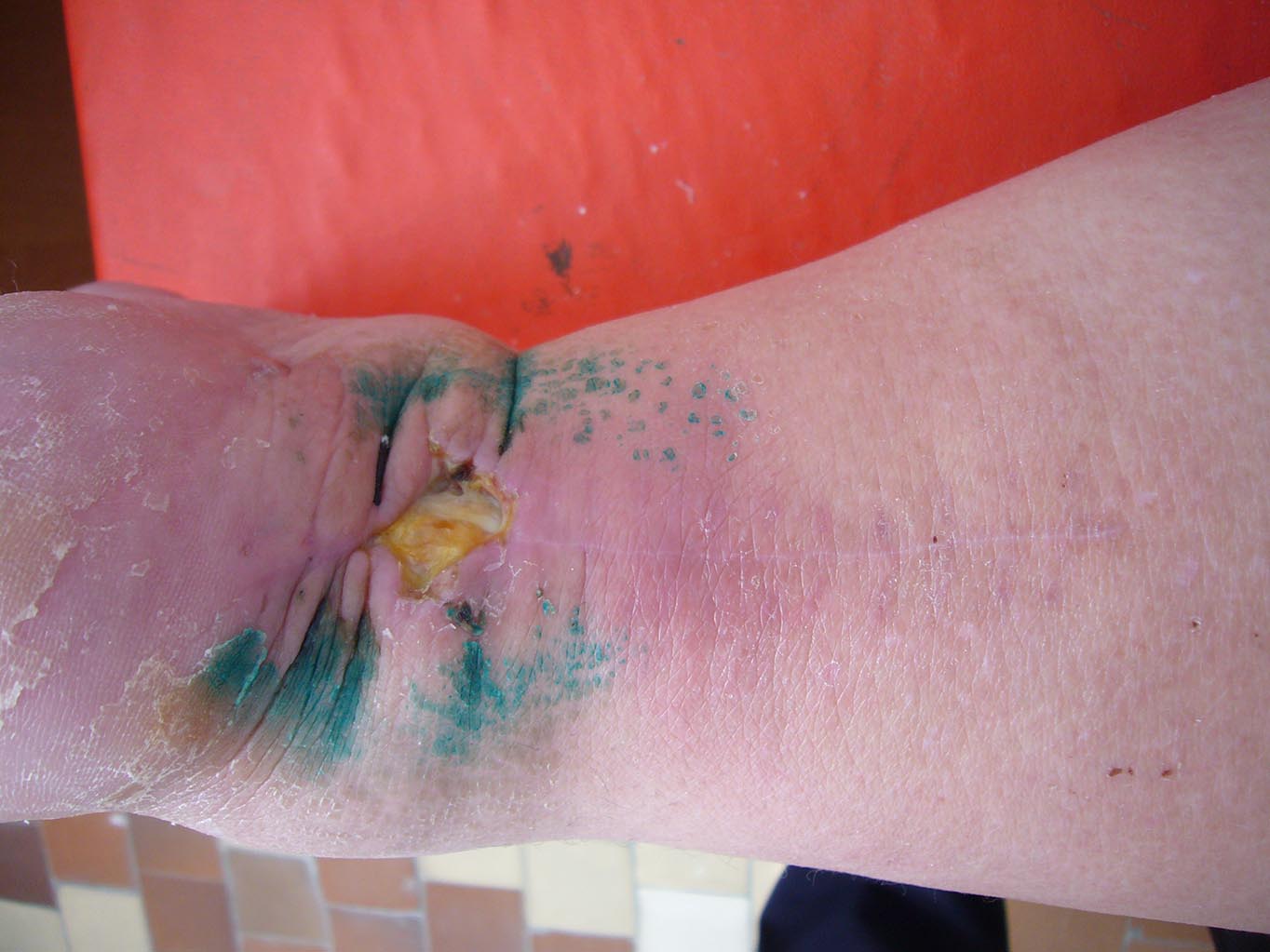 шина. При первых занятиях ЛФК образовался дефект кожи. Возраст больной
