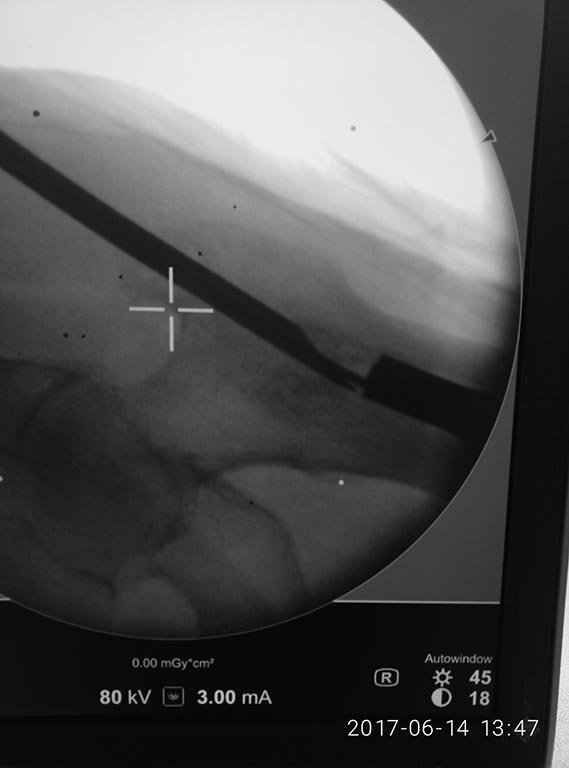 на своем. Проксимально по направителю рассверлили канал развертками