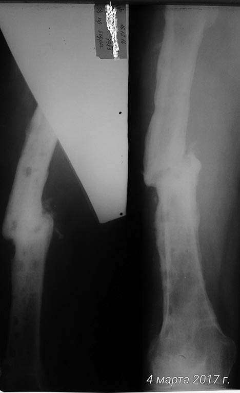 [Ortho] хронический остеомиелит с/3 бедра, свищевая форма, стадия обострения. Несросшийся перелом с/3 бедренной кости.