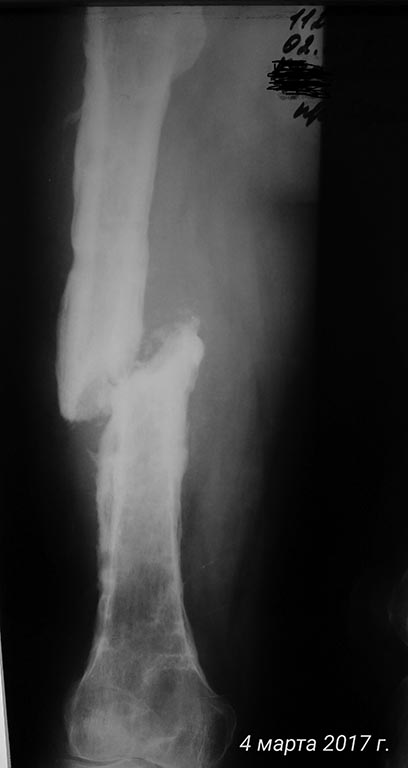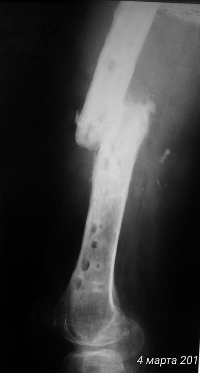 [Ortho] хронический остеомиелит с/3 бедра, свищевая форма, стадия обострения. Несросшийся перелом с/3 бедренной кости.
