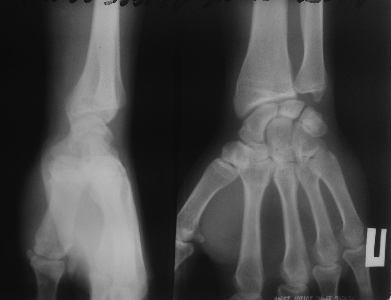 мужчина 32 лет беспокоят боли в правом лучезапястном суставе.
