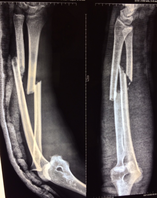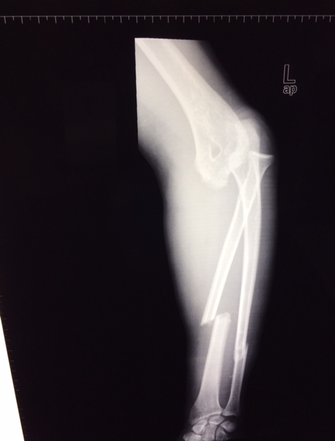 Парень, 24г., Авария, ЧМТ, перелом обеих костей предплечья, вывих локтевого сустава и перелом короноида (?).Рана 1 см, ушита при поступлении. Без осложнений, кисть - норм. функция.