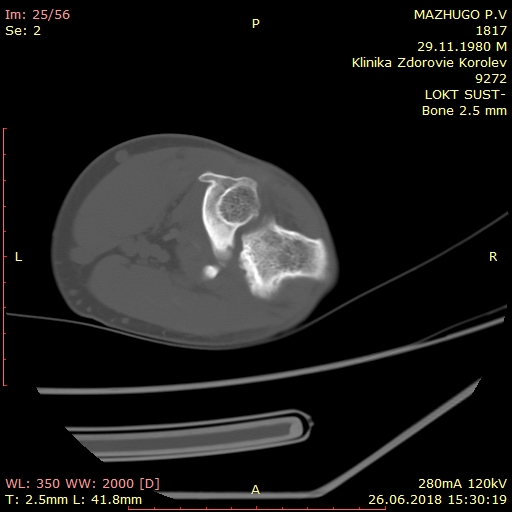 > Пациенту 38 лет. Травма в сентябре 2017 - вывих локтевого сустава с
