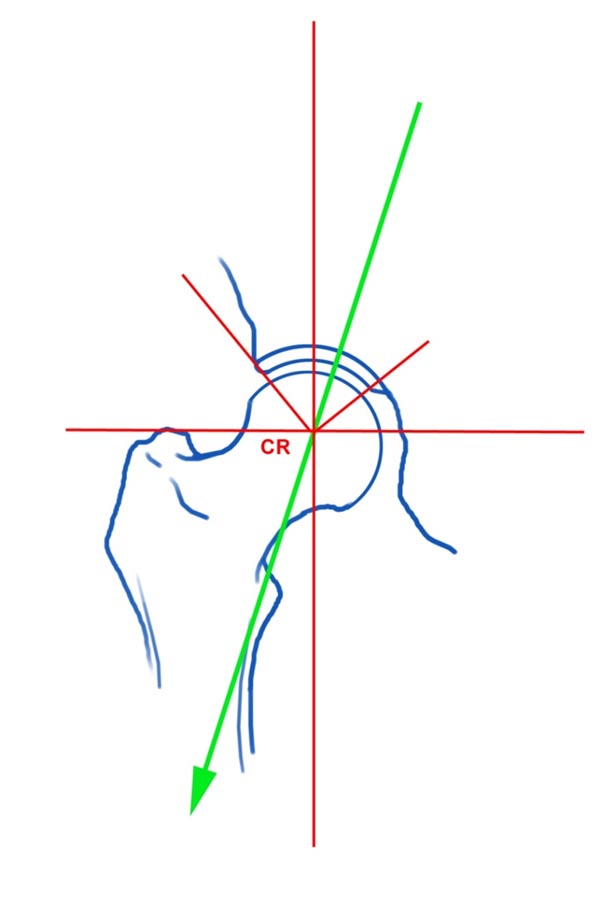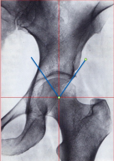 (center-edge angle of Wiberg), потому что вертикаль (зеленая) от центра