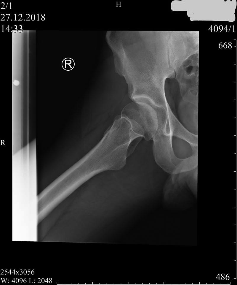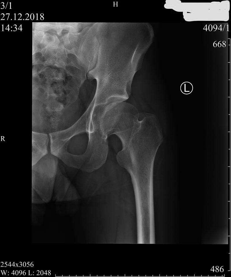 рентгенограммах: "ярко выраженный подвывих бедра и в зависимости от
