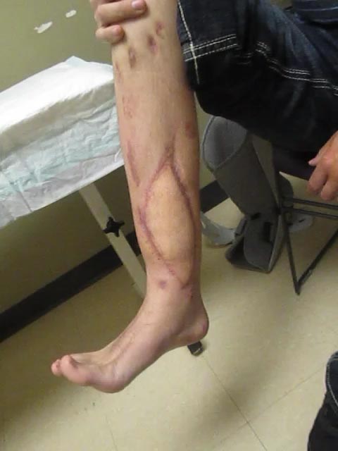 Данный случай не огнестрельная рана, а результат мотоциклетной аварии.