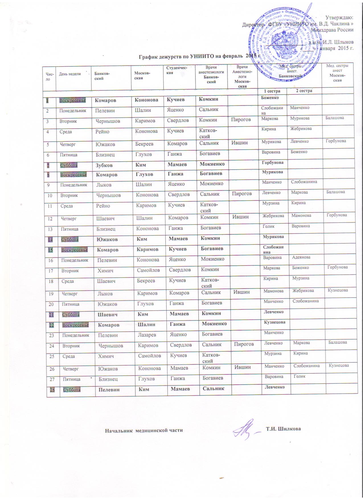 [Trauma] Fwd: График дежурств на февраль 2015 г